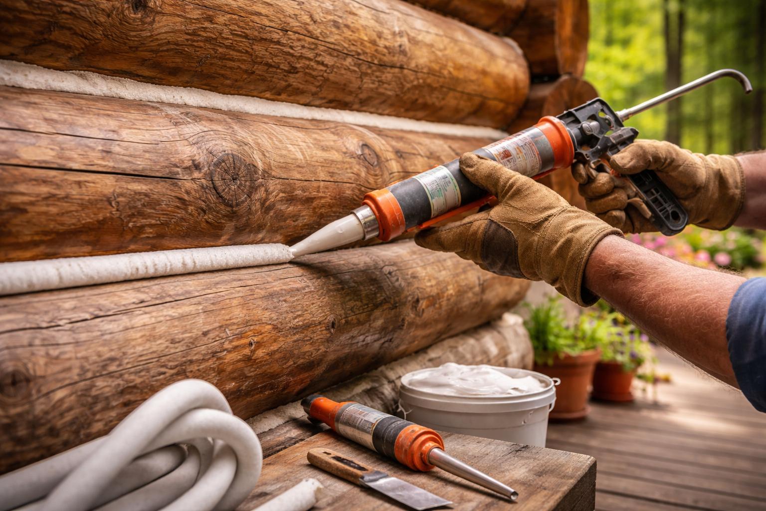 High-quality log home caulking products create a strong seal that prevents water penetration and air leaks while maintaining the natural movement of the wood.
